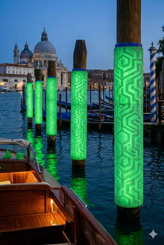 Integrated luminescent material enhances nighttime visibility and docking safety. High-performance protection with added guidance in low-light marina environments.